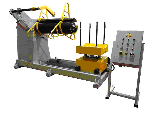 B) Вертикальные Разматыватели с Гидравлическим Разжимом (с гидравлической загрузочной тележкой)